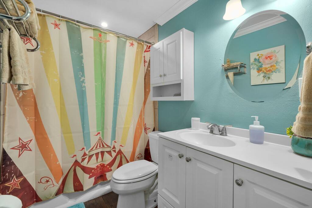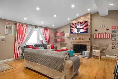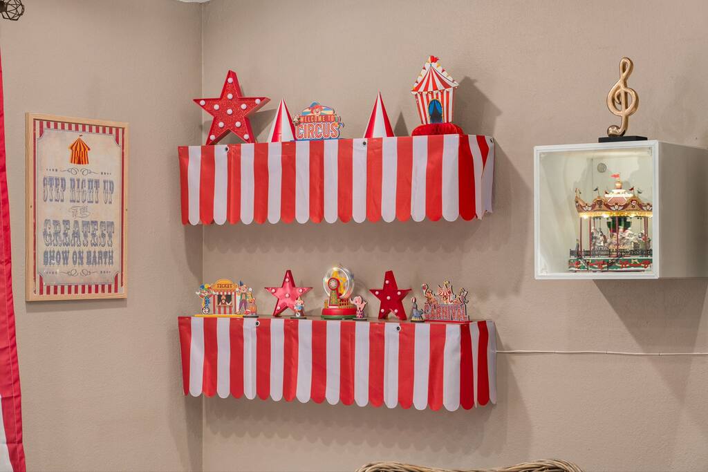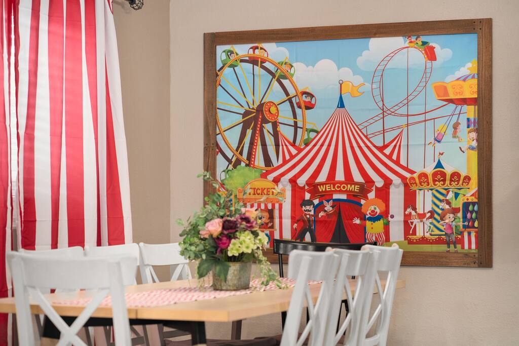 Step right up to this carnival lover's dream—totally clown-free! 🎠✨ From the moment you walk through the door, you’ll feel like you’ve entered a whimsical carnival, complete with vibrant lights and playful decor throughout.