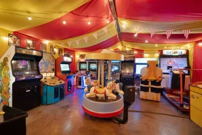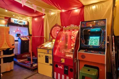 Step into the Game Room, designed to feel like the inside of a vibrant carnival tent! This immersive space is packed with over 20 arcade games, offering endless entertainment for guests of all ages. Whether you’re testing your reflexes or reliving the classics, this room has something for everyone.