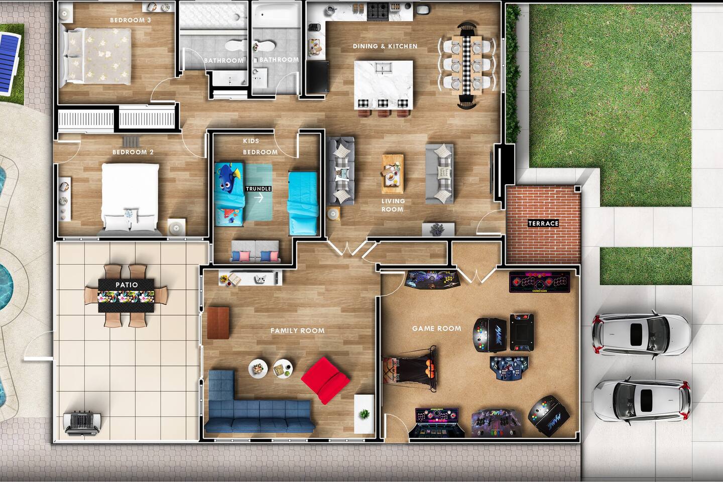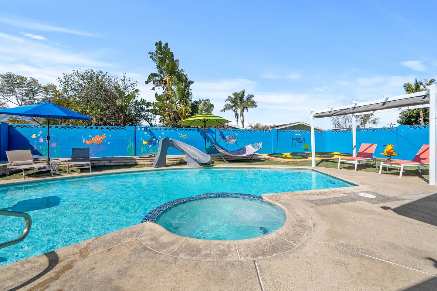 Your private backyard oasis is bursting with family-friendly fun — perfect for sunny afternoons and starlit evenings.