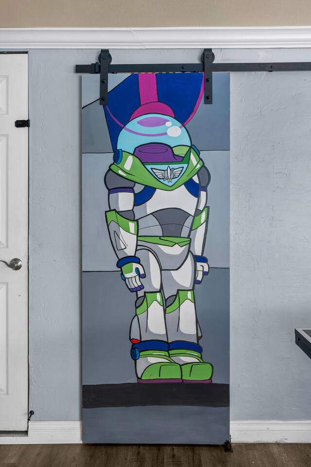 Step into a one-of-a-kind themed getaway where every corner bursts with imagination, fun, and entertainment for the whole family! This 3-bedroom, 2-bathroom family paradise brings your favorite Disney stories to life, all while offering incredible amenities like a Buzz Lightyear-themed arcade, a separate game room, heated pool, hot tub, mini-golf course, and even magical light and music shows!