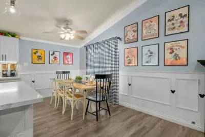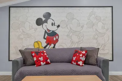 Cozy up in a Mickey Mouse-themed living room, where cheerful décor and Disney touches set the stage for movie nights, family game time, or just relaxing after a day at the parks.
