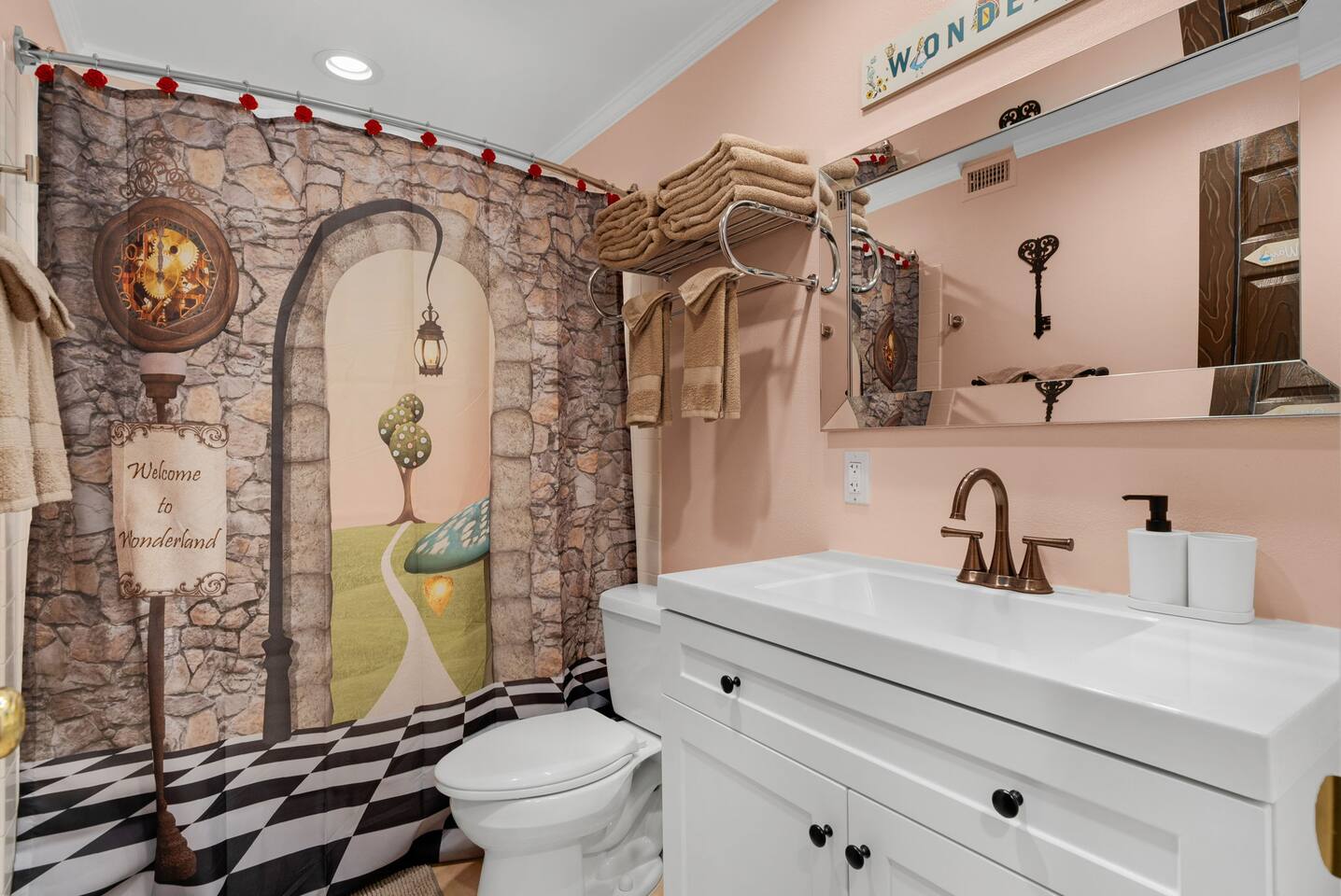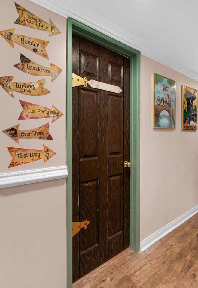 ๐ Upstairs Bathroom: Step through the looking glass into an Alice in Wonderland-themed bathroom, complete with whimsical touches that capture the enchantment and curiosity of Wonderland.