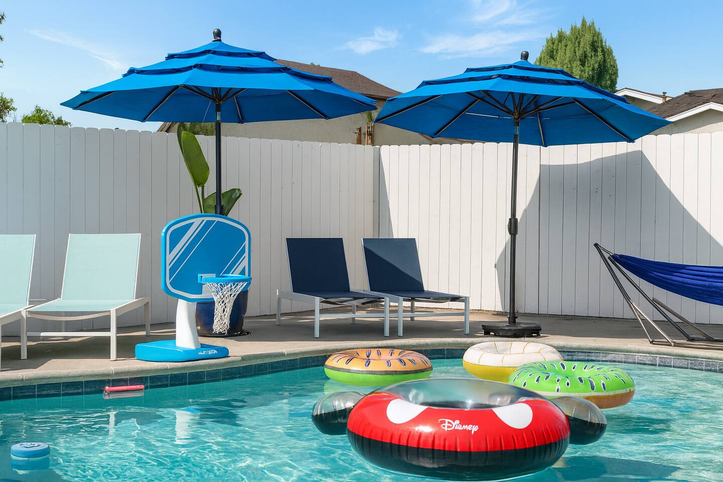 Continue your Disneyland adventure in the backyard ๐ด, where you can dive into the heated swimming pool ๐, relax in the jacuzzi ๐ฆ, or enjoy a friendly game of ping pong ๐ or pool ๐ฑ. The backyard is an oasis of fun and relaxation, perfect for unwinding after a day filled with Disney magic.