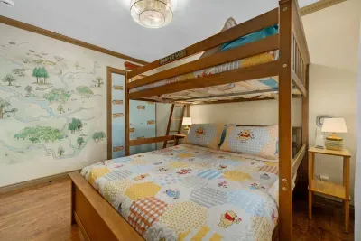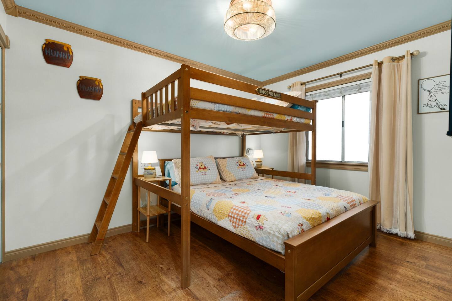 โ Bedroom 4 (Winnie the Pooh ๐ฏ): Full over Queen Bunk Bed, Large 4K TV