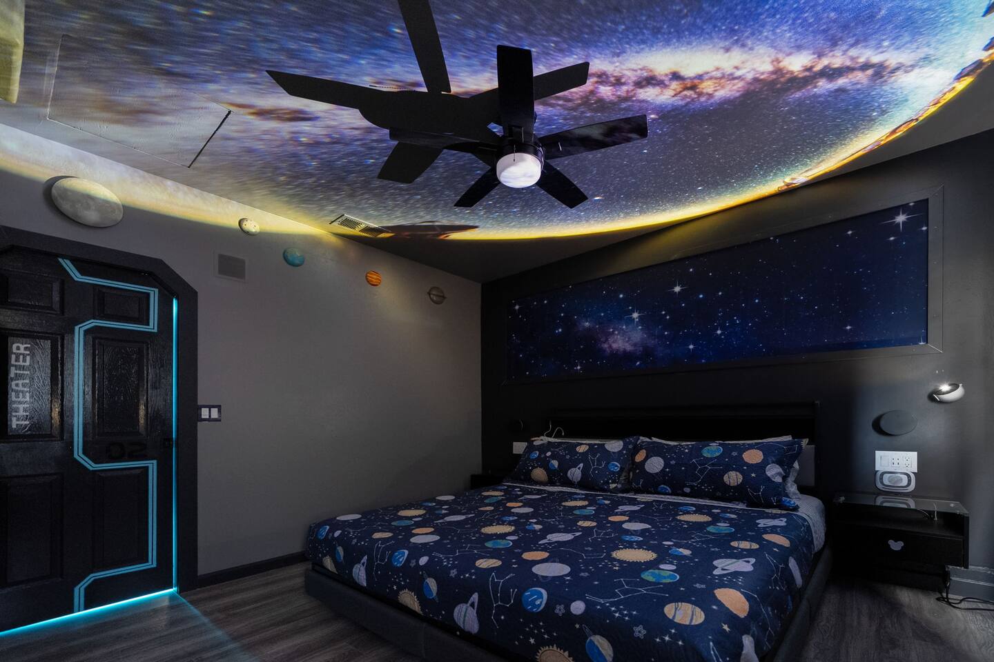 โ Bedroom 6 (Space Mountain ๐): King-Size Bed, Large 4K TV, Ensuite Bathroom