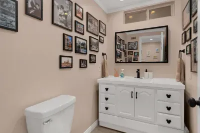 ๐ผ๏ธ Downstairs Bathroom: Celebrate the legacy of Walt Disney himself and the origins of Disneyland in a bathroom filled with vintage photos, memorabilia, and nods to the beginnings of the park ๐ .