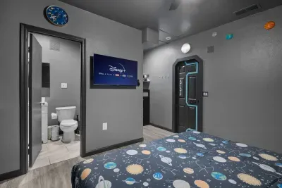 โจ Step into the heart of Disneyland, where each room is a tribute to the most beloved rides and attractions. This six-bedroom, 3.5-bathroom home is designed to immerse you in the magic and wonder of the park, offering a one-of-a-kind experience for Disney fans and families alike. From the thrilling Space Mountain ๐ to the charming Itโs a Small World ๐, Disneyland Oasis is your gateway to an unforgettable Disney adventure.