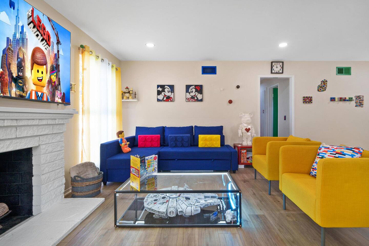 Step into a world of color, creativity, and building fun at our LEGO-themed vacation home! Perfect for families, groups of friends, and LEGO enthusiasts of all ages, this unique 3BR, 2Bath retreat will spark your imagination and inspire endless hours of play and relaxation. From life-sized LEGO characters to rooms brimming with iconic brick decor, every corner of this house has been designed to bring the LEGO universe to life. 🏡✨