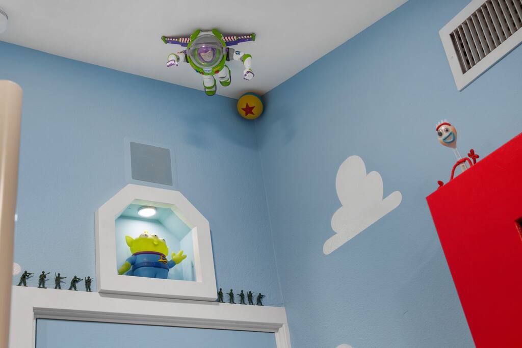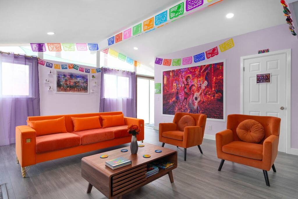 Step into this 4BR, 2Bath enchanted home and experience the magic of Pixar! Each room is filled with vibrant themed decor that immerses you in beloved stories and characters from your favorite Pixar movies. 🌟