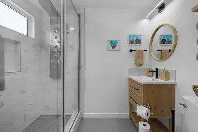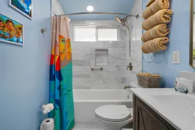 Experience the ocean magic of Finding Nemo in our two beautifully designed bathrooms! From the playful touches in the full guest bath to the calming blues of the ensuite master bath, every detail has been carefully curated to make your mornings and evenings feel extra special. 💦🐠