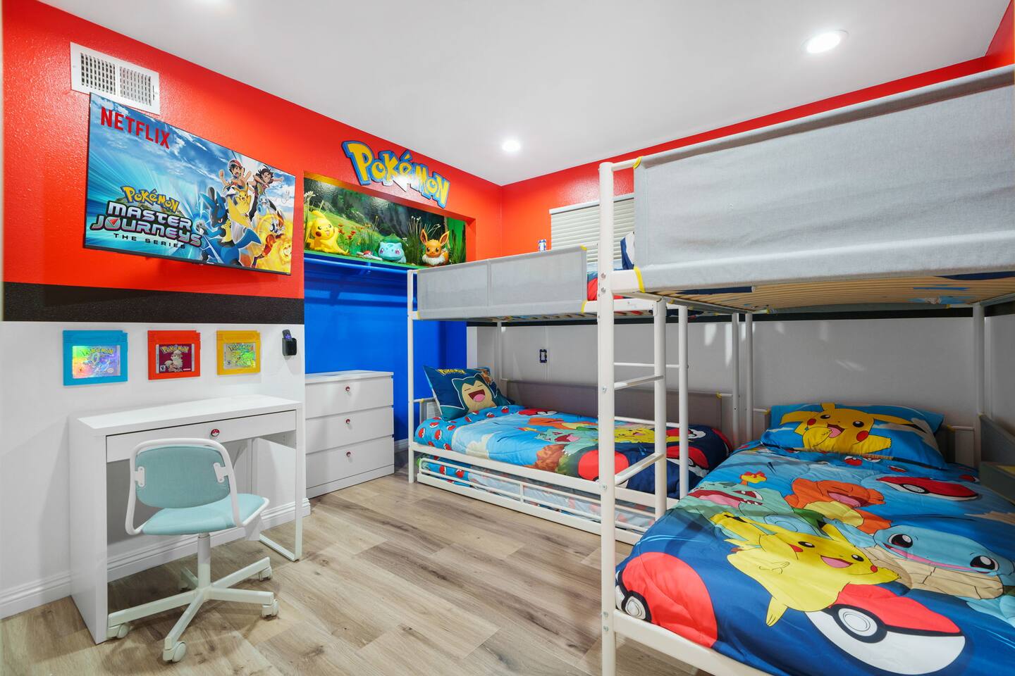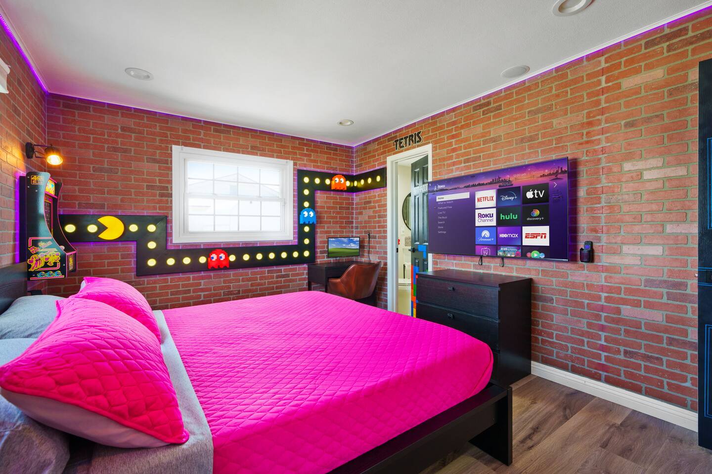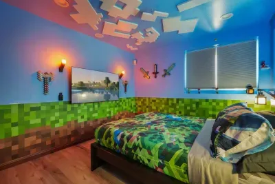 Get ready to “save your game” in one of three fully furnished, gaming-inspired bedrooms! 🎮 Whether you’re sleeping in the Pokemon room, building dreams in the Minecraft space, or feeling nostalgic in the Retro Arcade master suite—every room features themed decor, music, and effects to keep the game alive even in your dreams. 🌟