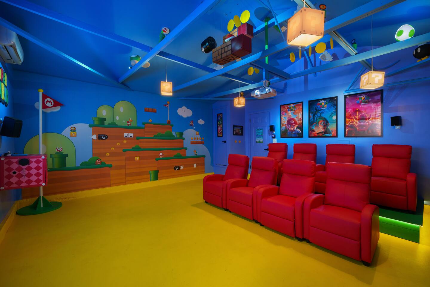 Welcome to the ultimate Pixel Playhouse! ✨ Get ready to dive into a world where pixels come to life and your favorite games become your reality. 🕹️ Challenge yourself in the Super Mario-themed theater & arcade, where you can watch movies or conquer classic games.