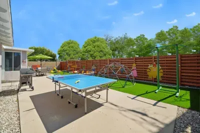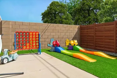 The fun continues outside! With a fully fenced playground, endless lawn games, and space to run, play, and explore, it’s a perfect place for your little players to burn off some extra energy. 🌞 Whether you’re grilling up a feast, racing on roller coaster rides, or challenging each other in Ping Pong, it’s the ultimate outdoor gamer’s zone! 🎠
