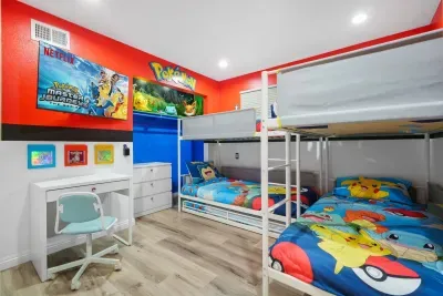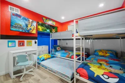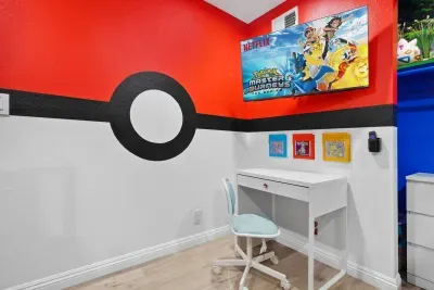 Get ready to level up your vacation at our immersive, video game-themed home, where pixels come to life and gaming adventures await around every corner! Perfect for families and gamers of all ages, this 3-bedroom, 2-bath retreat features meticulously designed spaces inspired by Minecraft, Pokemon, and Retro Arcade classics—with decor and details straight out of your favorite games! 🎈💥 Whether you’re exploring the worlds of Pikachu and friends, building in Minecraft, or battling your way through a retro arcade—this home will keep everyone entertained and inspired. 🌟