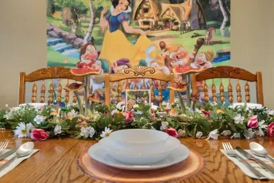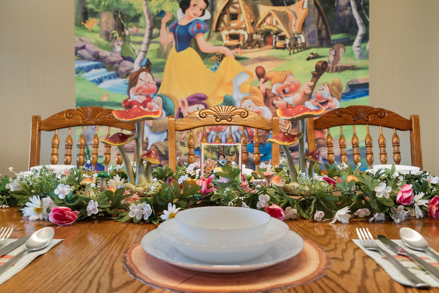 Enter the Royal Feast Hall, where the charm of Snow White’s woodland cottage meets modern convenience. 🍎 With murals of the Seven Dwarfs adding a playful touch, and Snow White-inspired dinnerware, every meal feels like a feast fit for a princess. Whether you’re preparing breakfast for your royal court or hosting a celebratory dinner, this space combines functionality and fantasy to create magical mealtime moments.