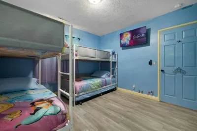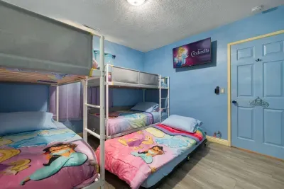 Step into a Disney-inspired retreat where the magic of the movies comes to life! ✨ This spacious and enchanting 3BR, 2Bath vacation home is perfect for families, offering whimsical rooms, a hidden game room behind a secret entrance, and a private backyard oasis 🎠✨