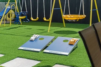 Step into the Royal Gardens, where the palace grounds stretch out into a magical outdoor kingdom filled with fun, relaxation, and adventure. 🏰✨ The little ones can rule over their own playground, while adults can unwind in the lounge area or challenge each other to a game of mini-golf. And when it’s time to cool off, take a dip in the crystal-clear swimming pool, perfect for a refreshing escape under the sun or stars! 🌊💫 From dawn till dusk, the Royal Gardens offer a storybook setting for creating precious family memories. 🌞🌜