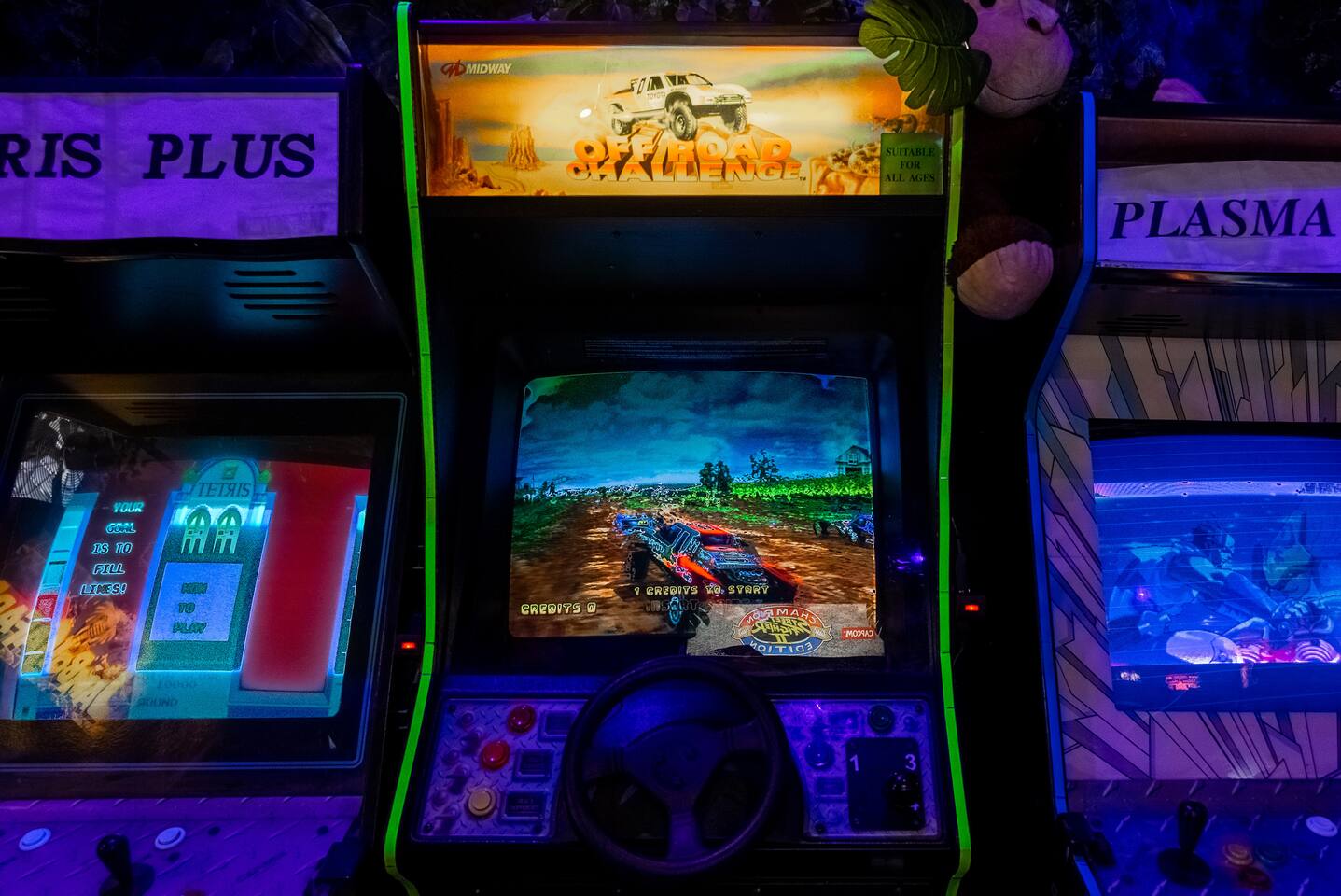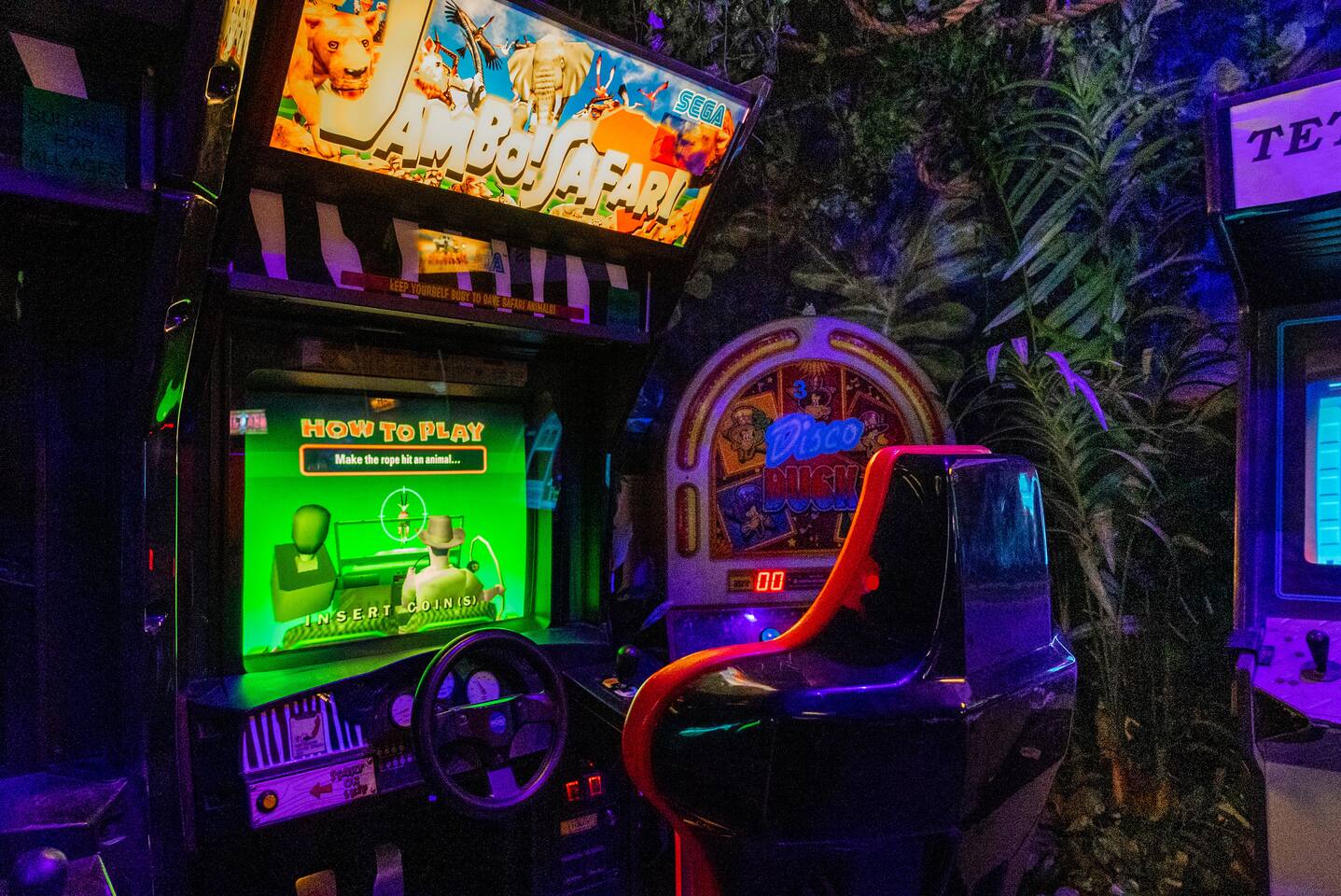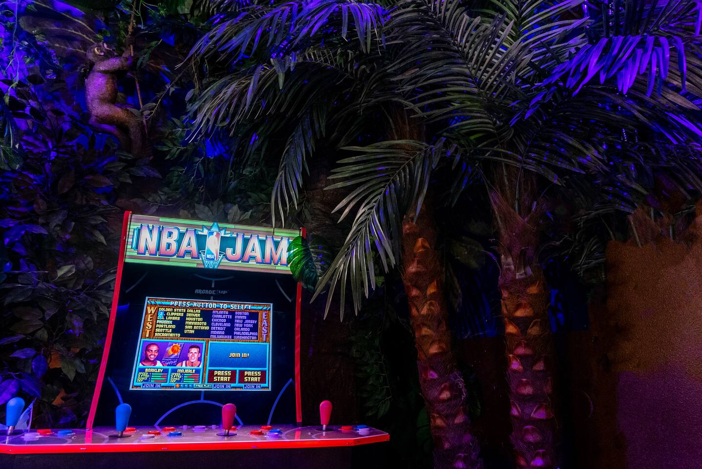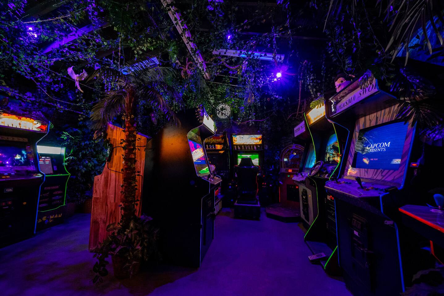 Escape into the jungle-themed arcade, decked out with hanging vines, neon lighting, and all the classics—all set to FREE PLAY!